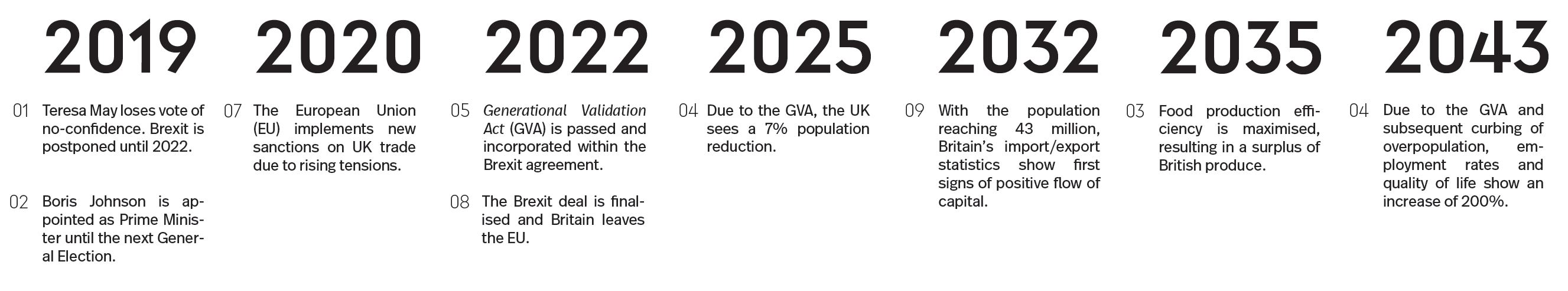 “With Great Britain moving into a new era of focused innovation, the necessity for drastic change became increasingly apparent. It was with great foresight that the Prime Minister implemented the ‘Generational Validation’ clause into the final Brexit agreement. This clause stated that due to over-population and the pressing threat of finite resources, citizenship would be reassessed. The clause also adjusted the citizenship requirements, stating that all applicants must apply with proof of two generations of British ancestry.